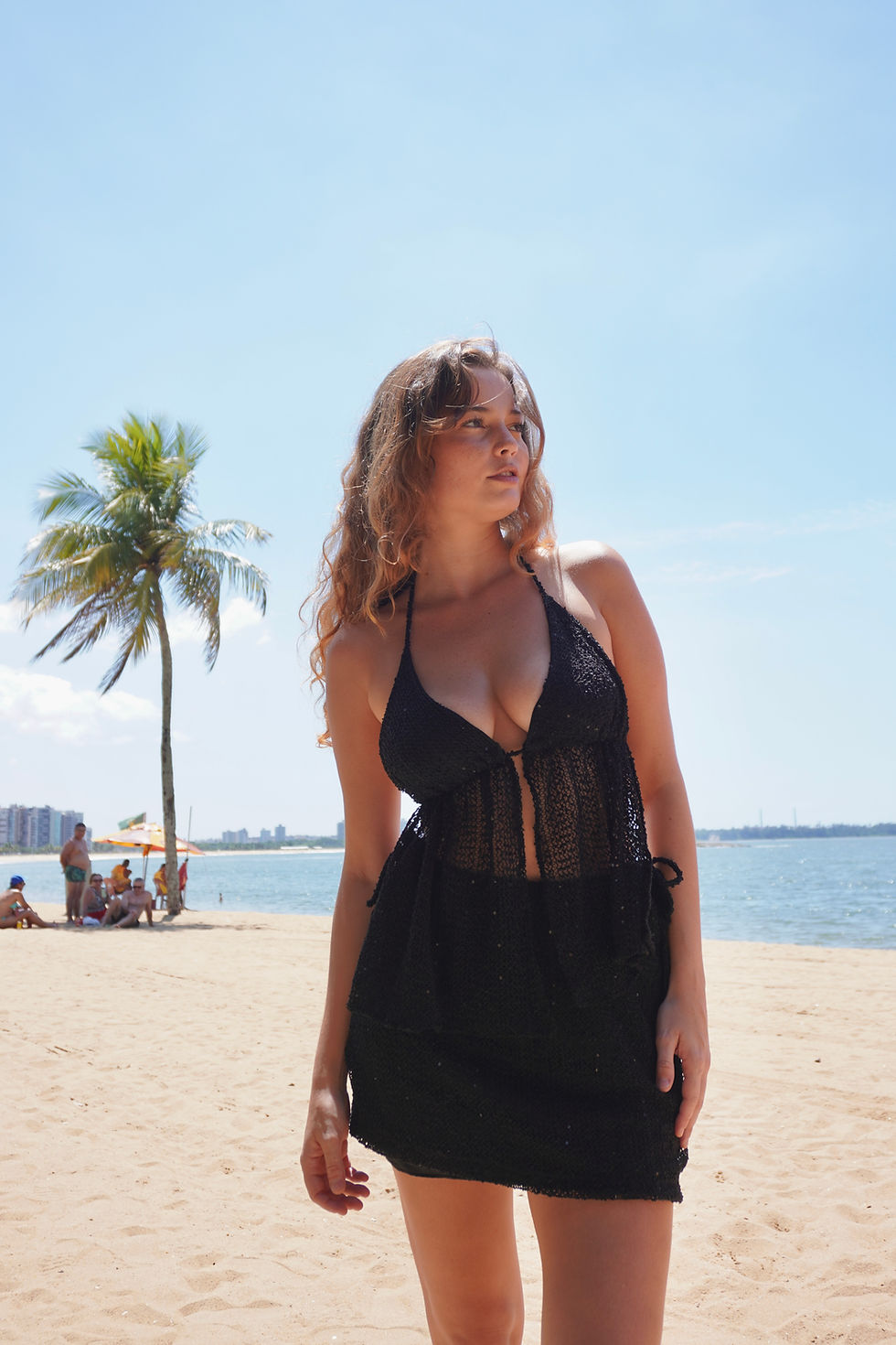 Vestido Ísis curto preto malha listras